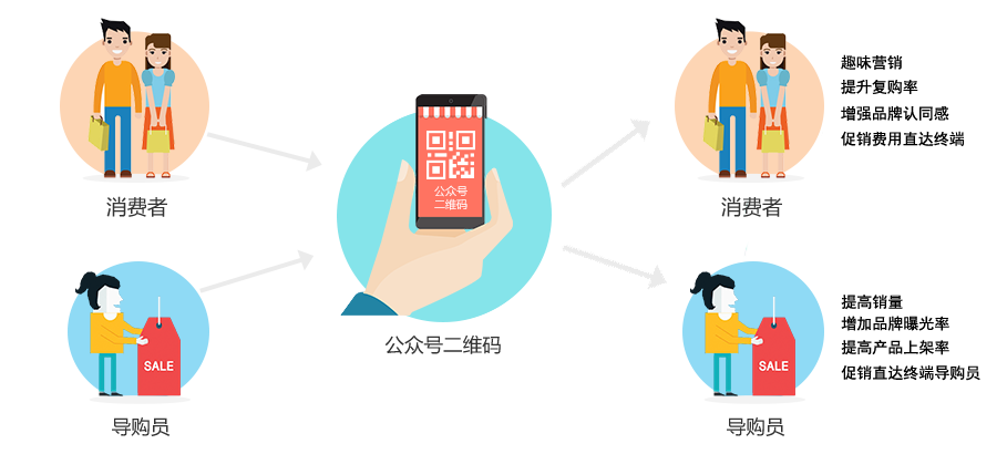 消費(fèi)者:消費(fèi)者掃碼關(guān)注品牌商公眾號(hào)領(lǐng)取紅包,促銷費(fèi)用直達(dá)消費(fèi)者,刺激購(gòu)買,提升復(fù)購(gòu)率;